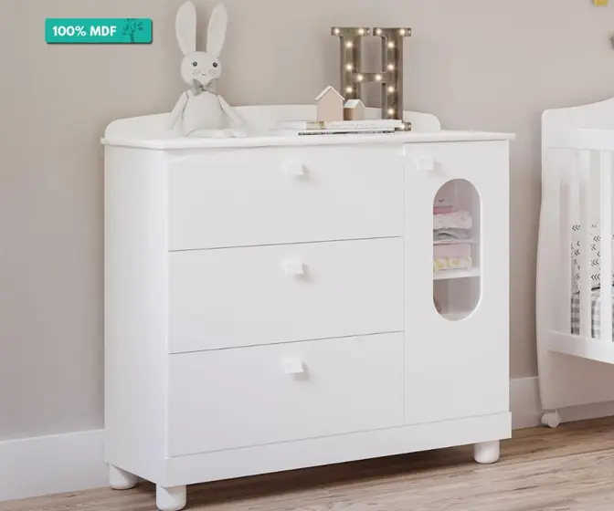 Cômoda Infantil 100% MDF 1 Porta 3 Gavetas Fofura Permobili.
