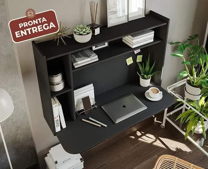 Escrivaninha Bella, simples porem de grande utilidade em seu dia a dia. Apesar de ter uma estrutura bem básica, ela é uma ótima opção para ter naquele canto de estudos ou trabalho que pede organização e praticidade. Não ocupa muito espaço, tem um tampo amplo para acomodar o seu computador e outros objetos.