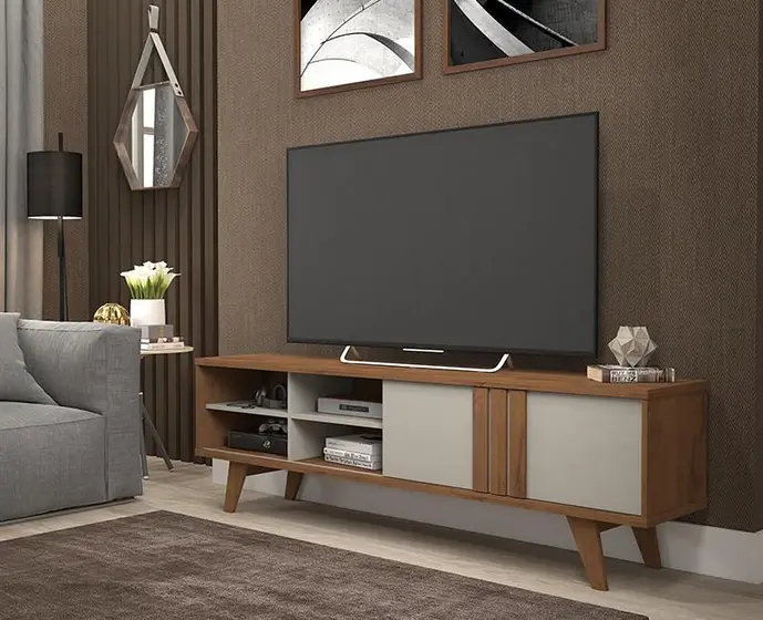 A Bancada Paraty é puro charme. Compacta, leve e com excelente estrutura, ela deixará sua sala ainda mais organizada e bonita. É um produto 100% MDF e os pés, em estilo retrô, são de madeira maciça. Possui 01 porta de correr com trilho embutido de alumínio e o tampo é robusto com 2,5cm de espessura.