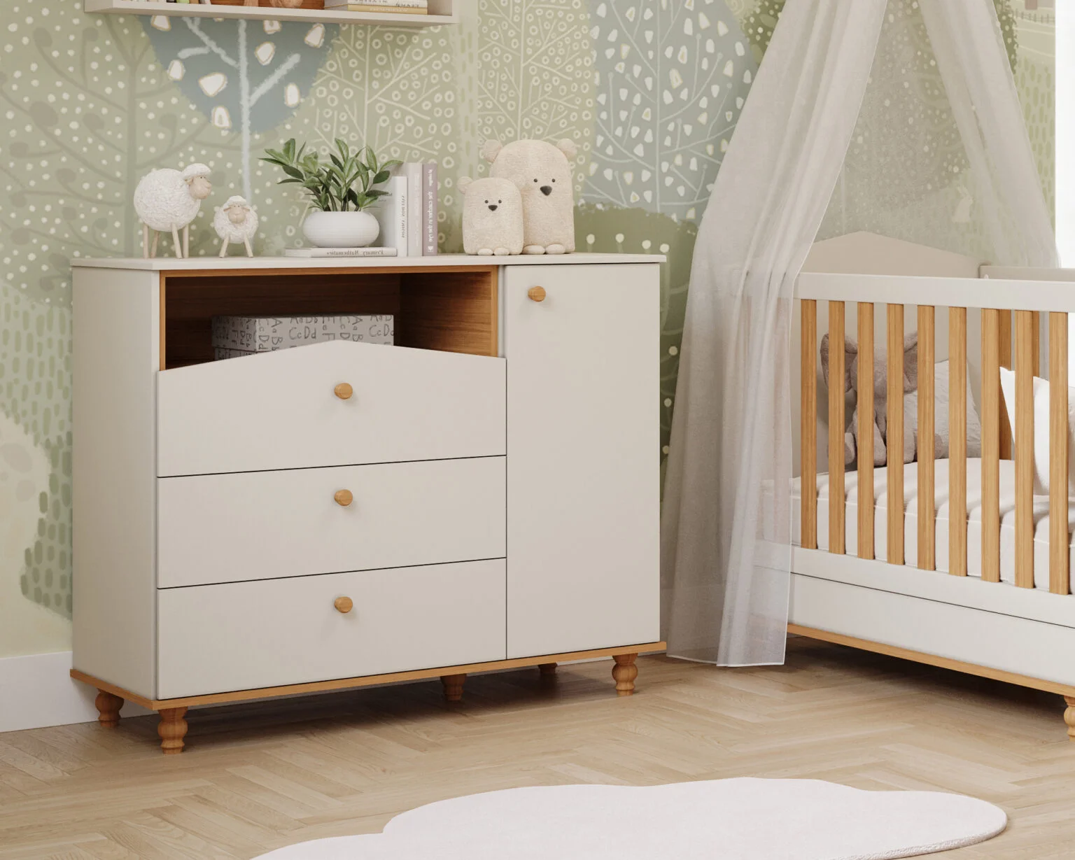 A Cômoda Casinha com porta Permóbili Baby é ideal para as mamães que precisam de bastante espaço para os objetos do bebê.